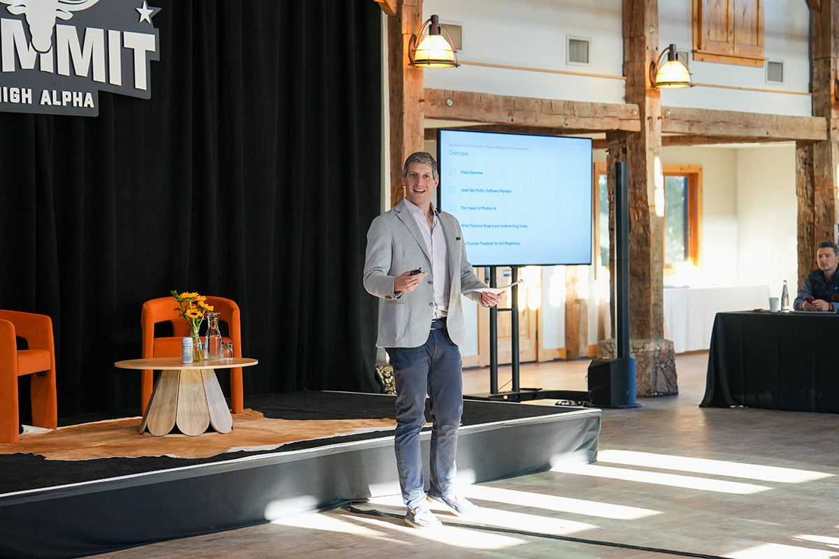 Ryan Atlas, Managing Partner at Vista Equity Partners, tackled the question every founder in the room was quietly sitting with: what does the current environment actually mean for my business?