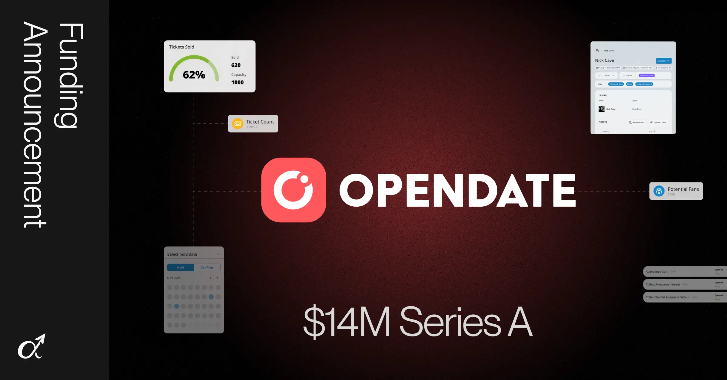 INDIANAPOLIS, IN — January 27th, 2026 — Opendate, the all-in-one platform for booking, ticketing, and marketing live events, announced today that it has raised a $14 million Series A led by High Alpha, with participation from existing investors.
